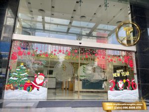 Vẽ Tranh Kính Giáng Sinh – Trang Trí Noel Tòa Nhà Văn Phòng Công Ty
